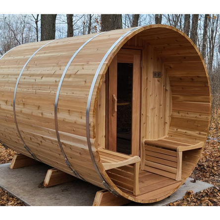 This unique concept makes our outdoor cedar barrel saunas an exciting investment that generations can enjoy. The saunas have 1 1/2″ thick walls for a long natural insulation and the barrel design give you a much smaller heating area than any rectangular sauna with plenty of room for bathers. They come either in knotty or clear red cedar, build in different sizes fitting up to 8-9 persons and can have a variety of upgrades.